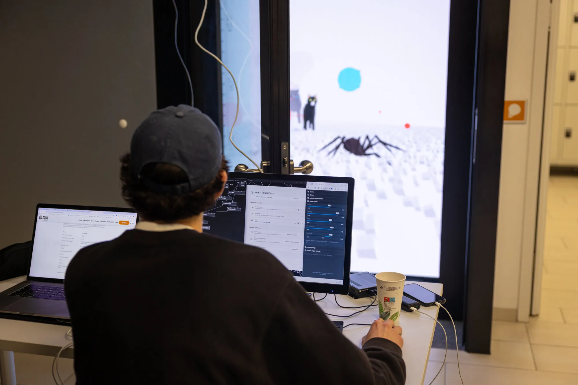 As lead developer, I implemented the project end-to-end. My focus was the full technical stack, spanning real-time interactive visuals, audio-reactive behavior, deployment, and a user-facing dashboard that lets the AUDIOVERSUM team configure and operate the installation on site.